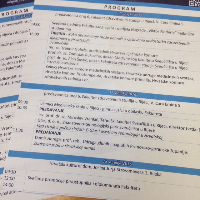 Svečana sjednica povodom dana Fakulteta zdravstvenih studija održana 14. ožujka 2016.